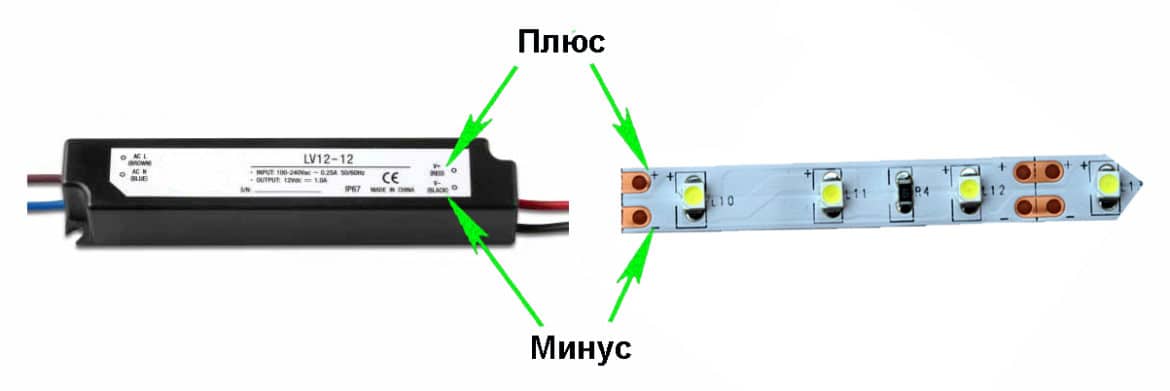 Ta en god titt på det nøye og har tenkt å plassere plusstegnet på utgangen (ut eller utgang) av cleme og der det er et minustegn. Ako, i stedet for å stikke en leder i blokken, vil de i tillegg blomstre: som svar, rødt "pluss", svart "minus". Send et bilde med LED-tape: