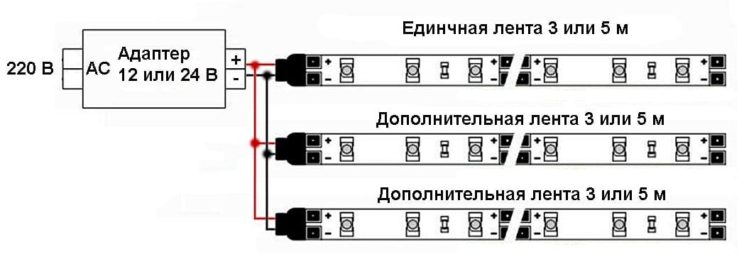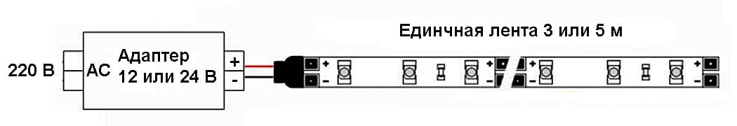 Koblet til "transformatoren" (adapter) kam LED stripe er generelt ikke vanskelig og neppe vil forårsake vanskeligheter. Her er det nok og løse 3 hovedspørsmål: