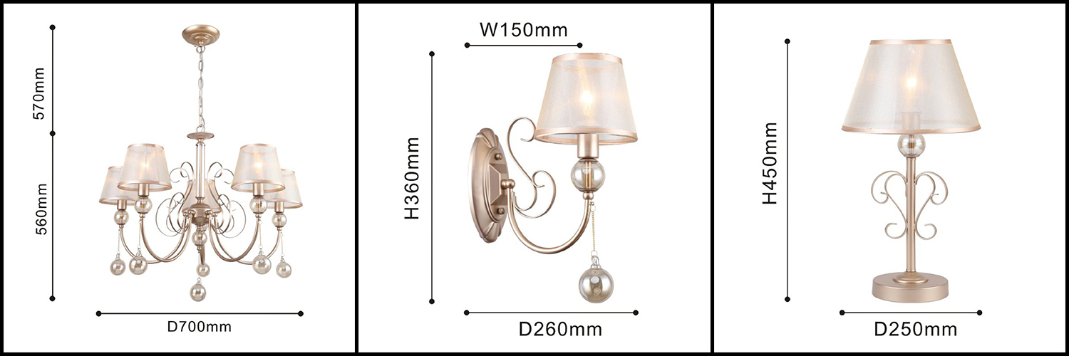 Kolleksjonen er laget i en klassisk stil og er ideell for plassering i gangen eller soverommet. Modellen reguleres av høyden og støtter tilkoblingen til dimeren.