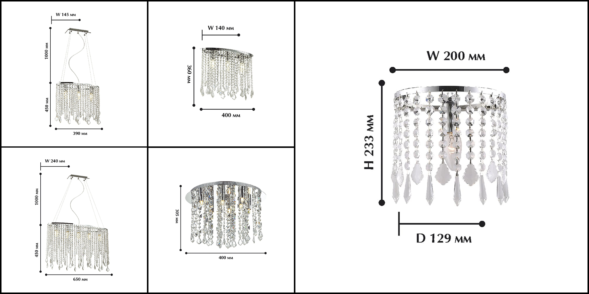 Kolleksjonen er laget i moderne stil og er ideell for installasjon i gangen, soverommet, korridoren eller kafeen. Støttemodellen er knyttet til dimeren.