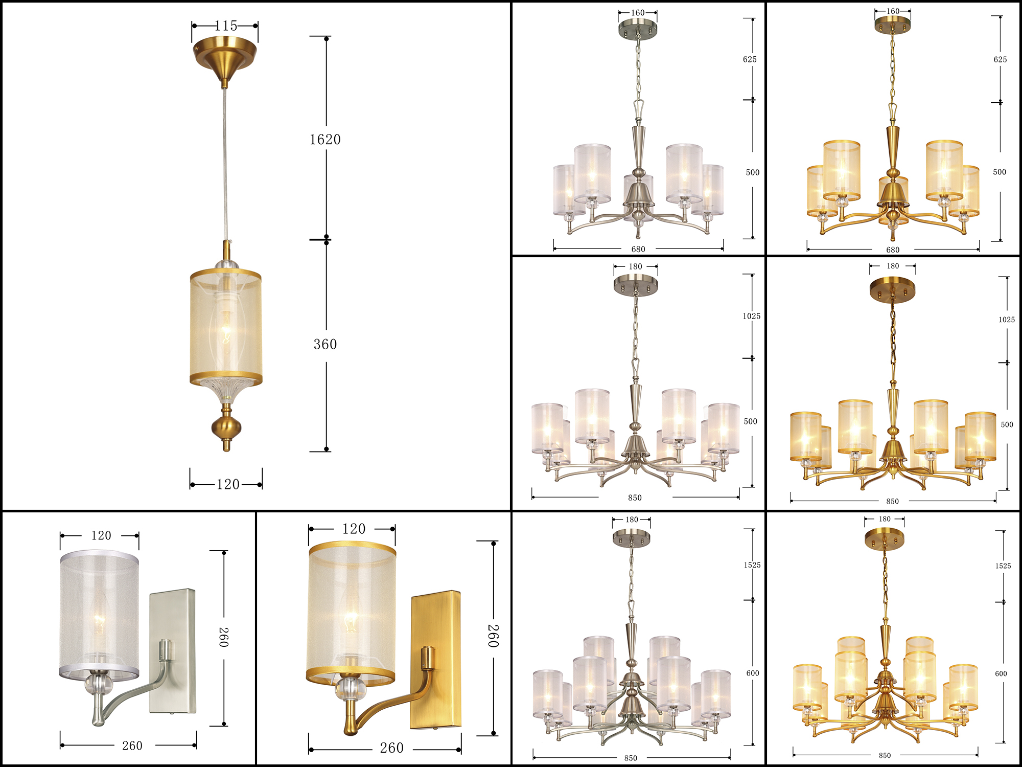 Serien er orientert i en klassisk stil og er ideell for installasjon i en hall, soverom, gang eller gang. Modellen er høydejusterbar og støttes av en dimer.