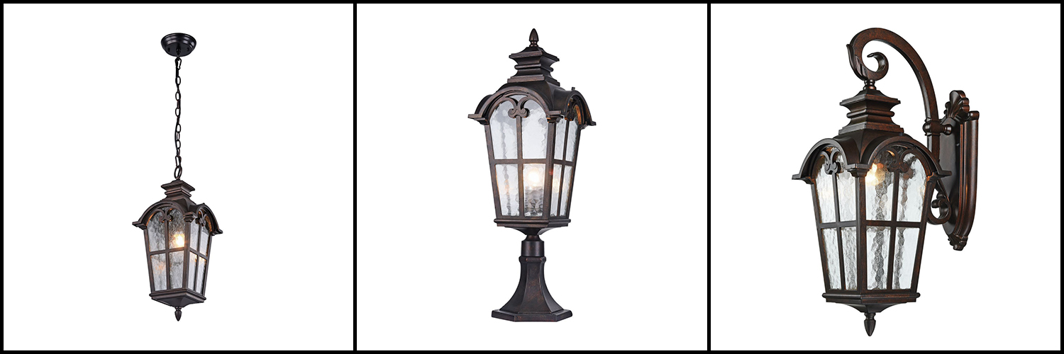 BRISTOL-serien inkluderer også: en utvendig hengende lampe, en belysningsmodell med en høyde på 68 cm og en yttervegg;