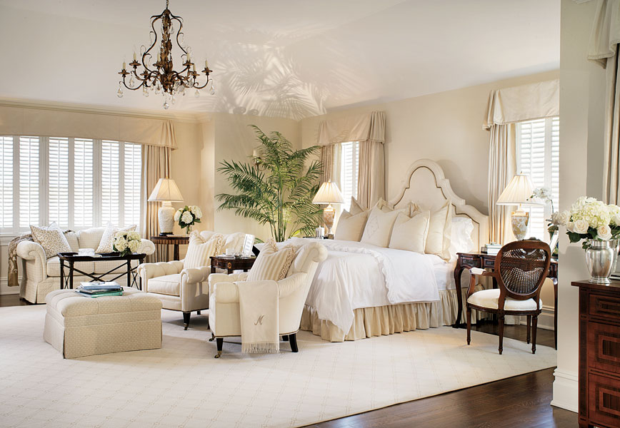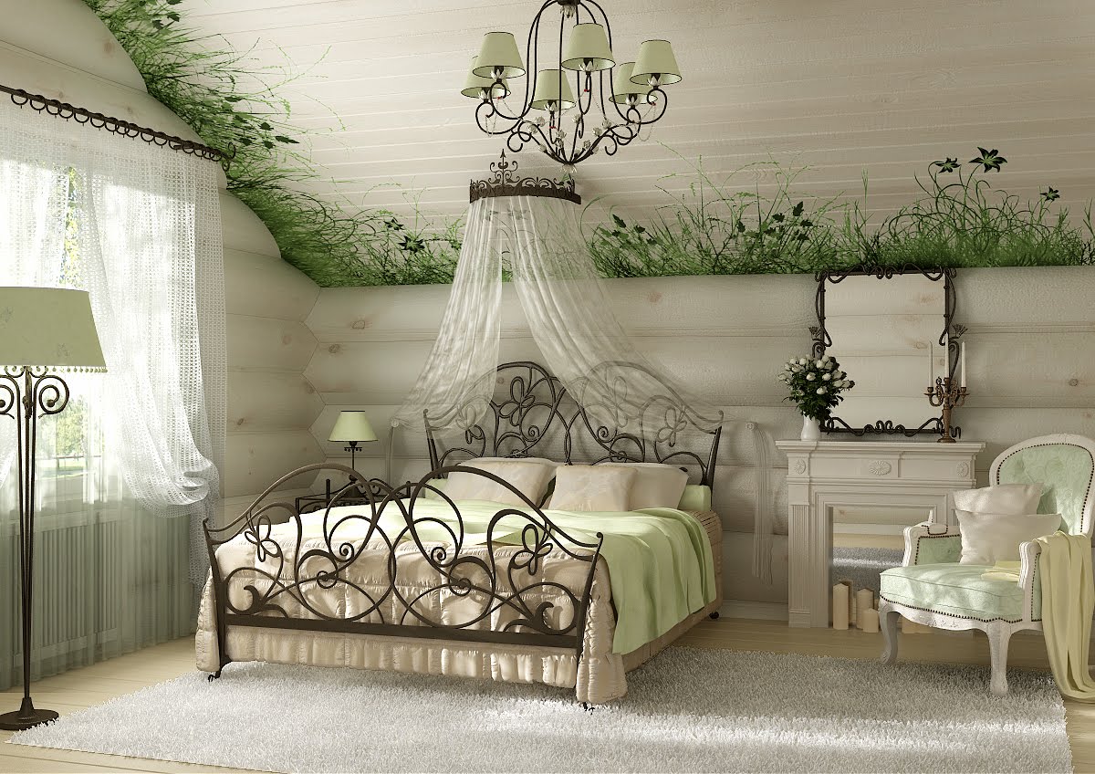 Soverommet, dekorert med belysning fra smidd jern og laget i Provence- eller barokkstil, ville være et bedre sted for kjærlig glede og god hvile.